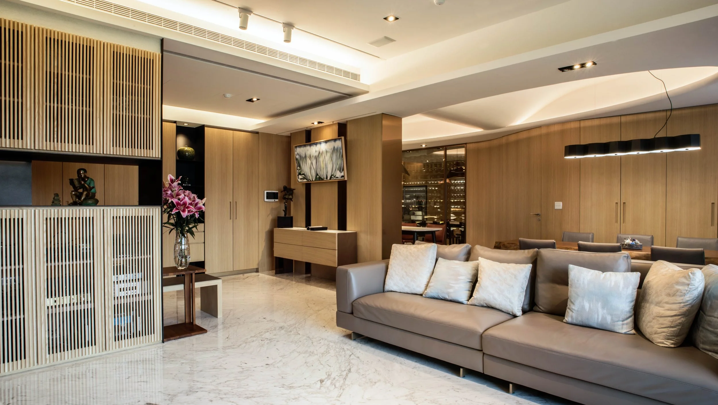 About Service Project Press Contact HOME 台中張宅 位置:台中年份:2017坪數:70坪 本案以強烈的材質對比,為空間注入獨特個性。粗獷的石皮電視牆,其天然紋理展現出剛毅的視覺張力,與淺色木紋與流線弧形天花板的溫潤感形成平衡。餐廳區域的弧形天花板設計,柔化了空間的稜角,與客廳的流線造型相互呼應,創造出流暢且富饒律動感的視覺效果。空間中點綴真皮燈具等異材質元素,透過精選的材質與燈光細節,為整體設計增添了溫暖與精緻的層次感,使居家空間不僅有現代美學,也充滿人性化的溫度。 Slide 1 Slide 1 (current slide) Slide 2 Slide 2 (current slide) Slide 3 Slide 3 (current slide) Slide 4 Slide 4 (current slide) Slide 5 Slide 5 (current slide) Slide 1 Slide 1 (current slide) Slide 2 Slide 2 (current slide) Slide 3 Slide 3 (current slide) Slide 4 Slide 4 (current slide) Slide 5 Slide 5 (current slide) © 2026 Daguan Inc.