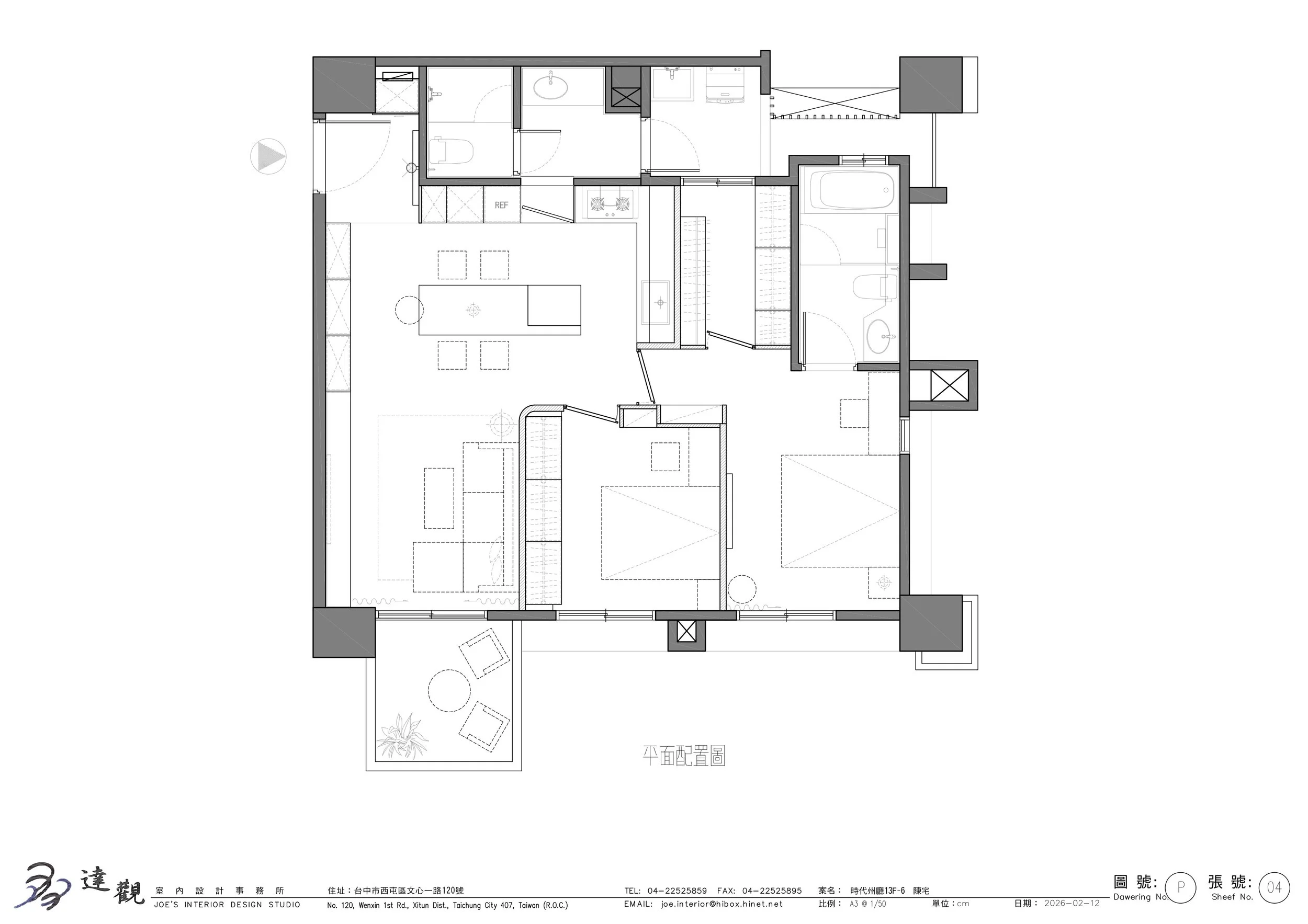 本案將原有三房格局調整為二加一房,以回應屋主習慣於餐桌工作的生活模式。設計上將廚房與餐廳空間擴大,並將額外的空間規劃為主臥室的專屬更衣室,以滿足屋主對機能與舒適的雙重需求。